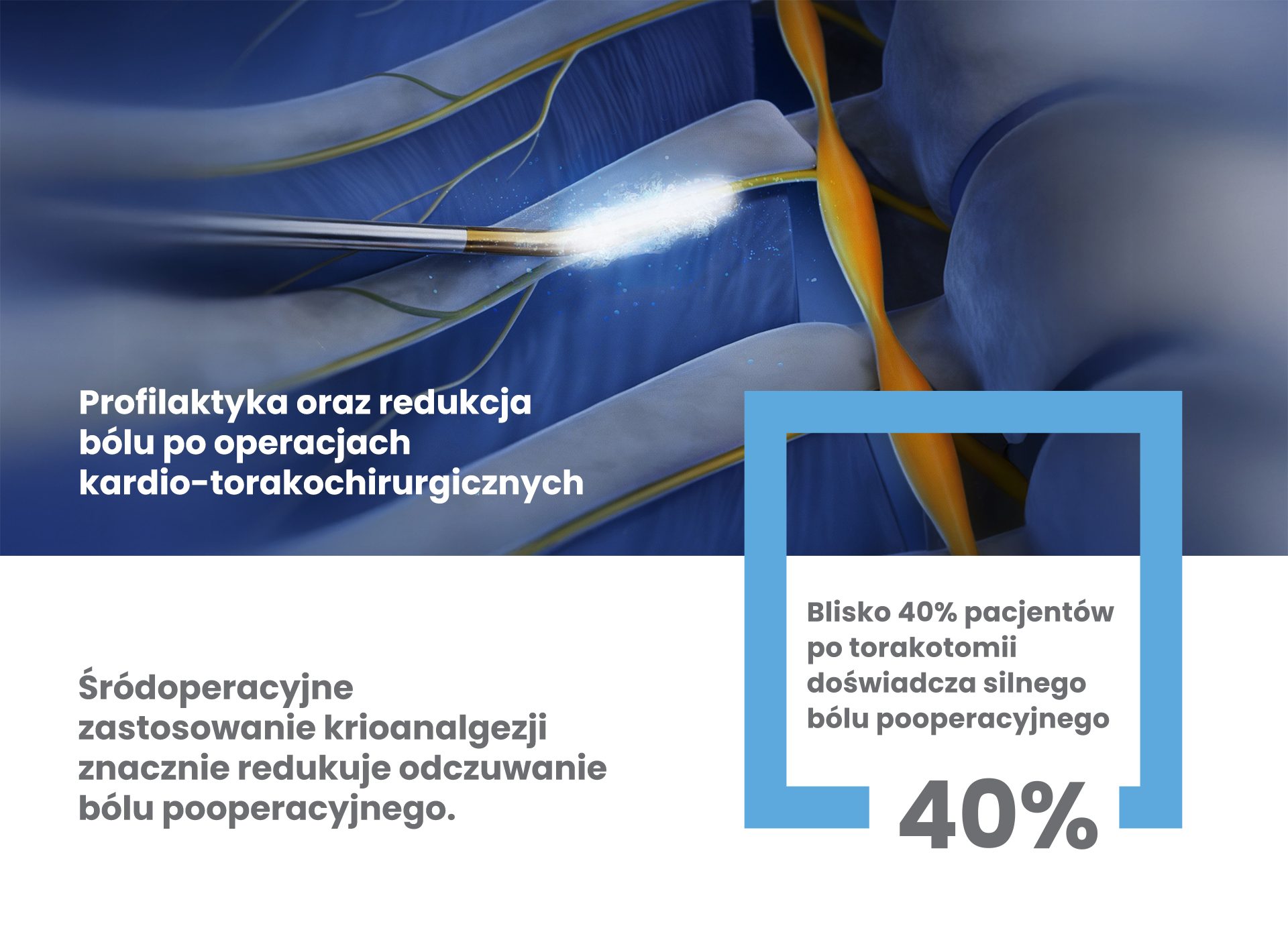 krioanalgezja może być alternatywą dla analgezji zewnątrzoponowej w leczeniu bólu po torakotomii, zapewniając porównywalną ulgę w bólu, przy mniejszym ryzyku powikłań. Dodatkową zaletą jest utrzymanie efektu redukcji bólu w dłuższym okresie rekonwalescencji pooperacyjnej
